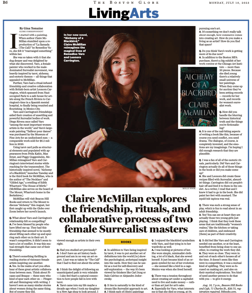 ‘Claire McMillan explores the friendship, rituals, and collaborative artistic process of two female Surrealist masters’ for The Boston Globe ginatomaineJuly 26, 2023Uncategorized Post navigation PreviousNext Read the full story in The Boston Globe. Related